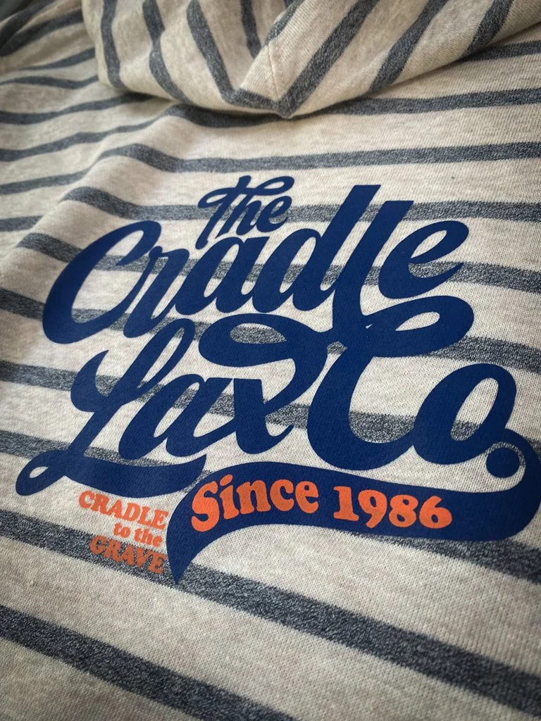 Screen printed left chest, full back, hood accent, and inside waistband detail